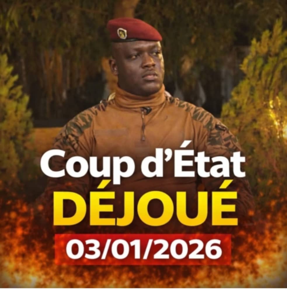 OUAGADOUGOU.— Une nuit de tension a régné au Burkina Faso à la suite d’une tentative de déstabilisation des institutions. Un coup d’État, visant la tête du leader burkinabè, le capitaine Ibrahim Traoré, a été déjouée dans la nuit du samedi 3 janvier 2026 grâce à l’intervention des forces de défense et de sécurité, selon plusieurs sources concordantes en provenance de la capitale.