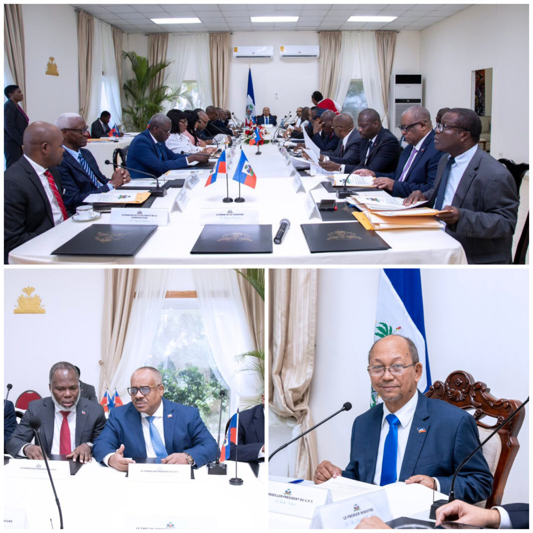11 octobre 2025 — Le retour du Conseil présidentiel de transition (CPT) au Palais national, jeudi 9 octobre 2025, se voulait un moment fort. Après plus de vingt mois d’absence du pouvoir central dans le centre-ville de Port-au-Prince, l’exécutif a tenu son premier Conseil des ministres dans l’enceinte du Palais, sous haute tension et dans un climat de tirs sporadiques aux alentours. Derrière ce geste hautement symbolique, trois décisions majeures ont été annoncées : l’adoption du budget 2025-2026, l’abandon du projet de nouvelle constitution et la réorganisation du mandat du Conseil électoral provisoire (CEP).